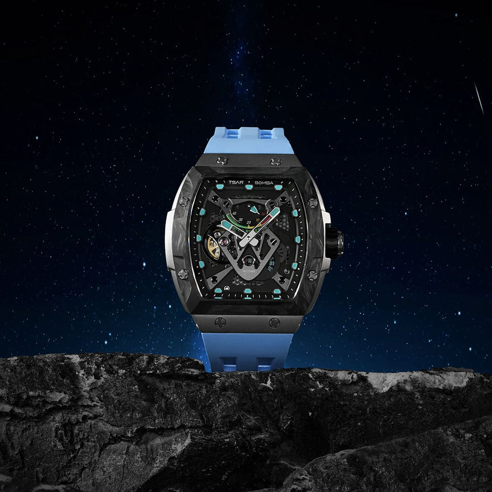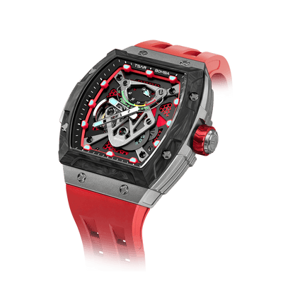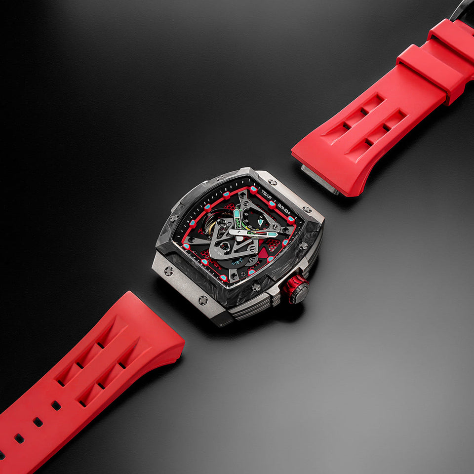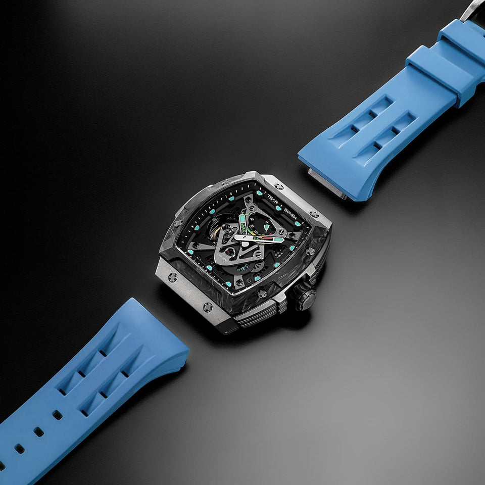 TSAR BOMBA's patented Quick Release system allows you to easily change the fluoroelastomer strap with a single click. Fluororubber is flexible, lightweight, and comfortable against the skin, offering sweat-resistant, antibacterial, and exceptional wearing comfort. Whether in the city, adventuring outdoors, or everyday sports, effortlessly switch gears and control your style.