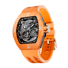 Bold contours meet refined geometry. Every angle of this timepiece is sculpted for strength, balance, and distinction. The openwork design reveals the rhythm of time, transforming every glance into a moment of admiration.