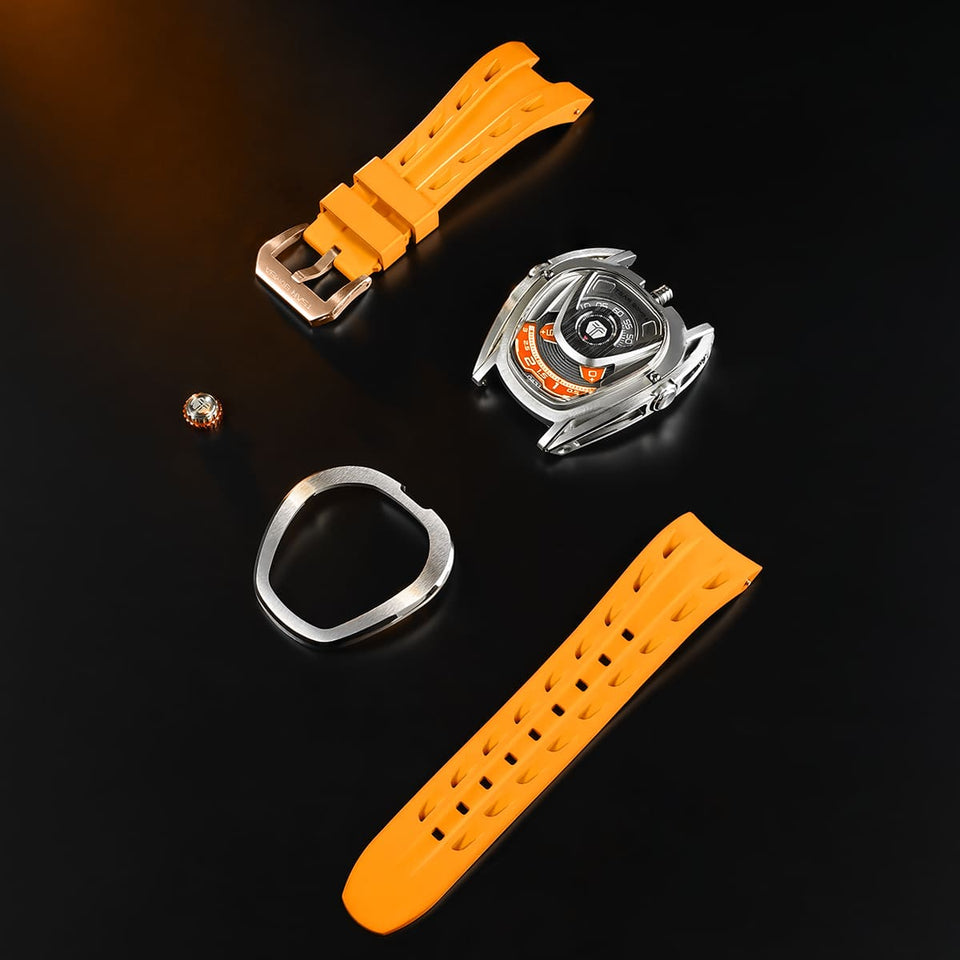 L'orologio Reactor è più di un orologio automatico raffinato e resistente; è un accessorio elegante che ti permette di cambiare stile ed esprimere la tua personalità. Ispirato alla forza della natura e capace di valorizzare il fascino della meccanica all'avanguardia, offre un modo versatile per adattarsi a ogni giorno—è il tuo ritmo e la tua espressione personale.