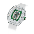 A supple fluororubber strap wraps elegantly around the wrist, combining flexibility, durability, and effortless elegance for everyday wear.