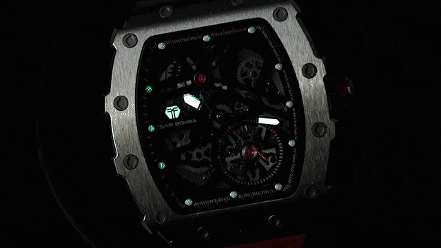 The highly flexible silicone strap fits every curve of the wrist, providing a comfortable wearing experience all day long. Its matte texture and streamlined design perfectly blend into the overall mechanical style, showing a balance between sportiness and elegance in the technological era.